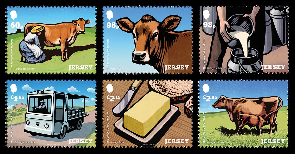 Почтовая администрация Джерси 24 октября 2024 года выпустила почтовые марки посвященные молочной промышленности. Серия так и называется "Молочная промышленность Джерси". Выпуск состоял из шести марок разного номинала и почтового блока. Размер марок: 30 мм* 40 мм. Размер миниатюрного листа: 88 мм x 120 мм, с перфорированной маркой 43,33 мм x 70 мм. Марки выполненный в стиле линогравюры. Отпечатаны в Бельгии. Марки выпускались в листах по 10 марок в листе на каждый сюжет. Для почтовых марок и блока были выпущены конверты первого дня. Также были выпущены сувенирные наборы, в которые входит набор марок и почтовый блок и конверты первого дня. Информация и технические детали выпуска напечатаны на внутренней стороне набора. #филателия #молоко #промышленность #джерси