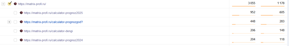 Для экспертов, консультантов по предназначению, нумерологов, тарологов начинается самая жаркая пора для прогнозов. Страница по расчету энергий года 2025 сейчас самая популярная на нашем сайте MATRIX-PROFI. За последнюю неделю 605 человек посчитали прогноз на 2025 год 952 раза. 125 человек получили расшифровку энергий и стали нашими новыми подписчиками. ❗️Если вы консультируете по Матрице судьбы - не упустите момент! Используйте растущий интерес к прогнозам на 2025. Отличная новость в том, что вы можете разместить у себя на сайте калькулятор прогноза-2025 бесплатно. Просто разместите на сайте html код: <iframe style="width: 100%; height: 850px; border: none; overflow: hidden;" src="https://matrix-profi.ru/your2025"></iframe> Протестировать здесь После того как ваш посетитель ввёл дату рождения и нажал кнопку "Рассчитать прогноз" он получает свою Матрицу года и энергии года: Абсолютно на любых без ограничений: wordpress, tilda, taplink и так далее. Как видите, его можно разместить даже е