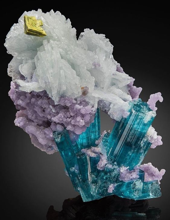 В бесконечно меняющемся мире, когда каждый день преподносит сюрпризы не совсем приятные, полезно прикоснуться к чему-то истинному, непреходящему и чудесному. Мы забываем о том, что мир полон чудес и я вам хочу об этом напомнить. отрадно сознавать, что есть люди, которые кропотливо и неустанно трудятся, разыскивая в недрах Земли прекрасные кристаллы. ещё отраднее то, что их бережно очищают и с любовью запечатлевают для того. чтобы люди во всех уголках планеты смогли увидеть эти чудеса природы! Вот всего маленькая часть, десять невероятных природных кристаллов, которые стали событием и бестселлерами минерального мира: Сказочный цвет турмалина, идентичный Параиба, невероятно гармонично сочетается с сиреневым лепидолитом. Метаотенит - ураносодержащий минерал венчает всю эту композицию. - Ураносодержащий? Он, наверное, невероятно опасен! - воскликнут читатели, разобраться в этом вопросе поможет статья: Искусство фотографии создает впечатление нереальности этой минеральной композиции, но эт