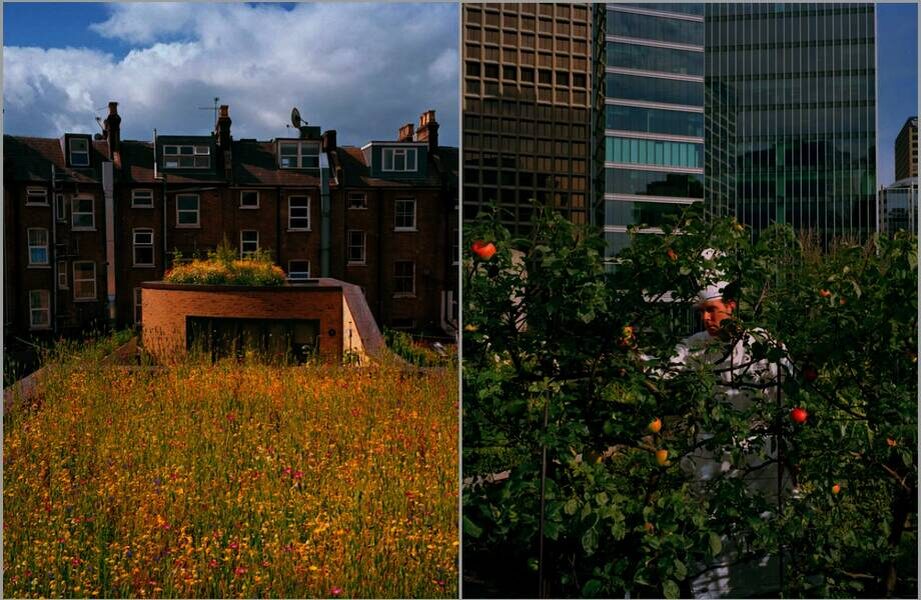 Фотографы запечатлели сады на крышах в разных уголках планеты. Растения преобразуют окружающее пространство, и с ними даже бетонные джунгли выглядят уютней. Мы рассказывали, что в Нидерландах, например, маленькие садики разбивают на крышах автобусных остановок. На самом деле во многих городах есть прекрасная практика ― крыши домов превращать в сады. Кое-где это даже закреплено на законодательном уровне. Впервые такая инициатива появилась в немецком городе Штутгарт: с 1989 году власти требуют, чтобы на любом здании с плоской крышей был сад. Зелень и цветы не только преображают унылые офисные здания, они еще и создают среду обитания для насекомых и птиц. Фотографы Дайан Кук (Diane Cook) и Лен Дженшел (Len Jenshel) путешествовали по миру, фотографируя эти райские сады на крышах в разных уголках света. Мы также рассказывали, почему скандинавские дома традиционно строили с зелеными крышами.