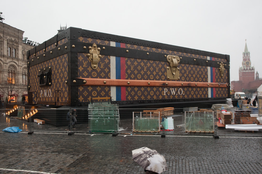 Как это было. В 2013 году компания Louis Vuitton запланировала провести выставку «Душа странствий» в Москве. На ней хотели представить личные вещи знаменитых клиентов модного дома – Николая II, Эрнеста Хемингуэя, Шэрон Стоун, а все доходы отправить в благотворительный фонд «Обнаженные сердца». Для проведения выставки Louis Vuitton изготовила гигантский павильон в виде чемодана и поставила его на Красной площади.
