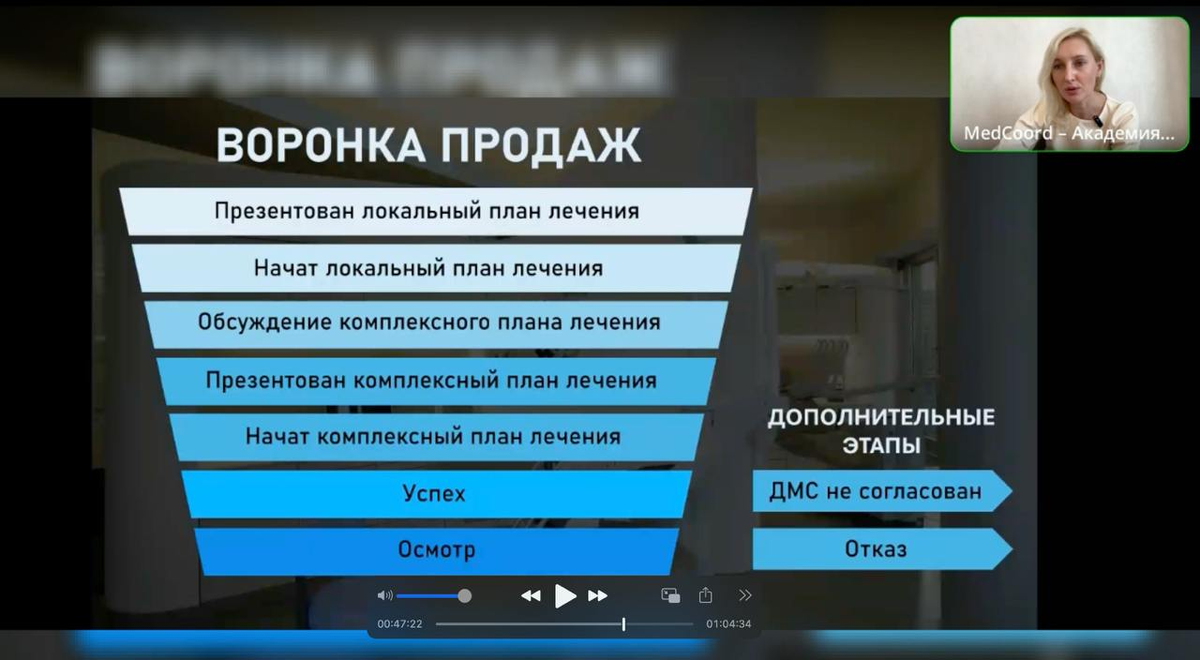 - Фокус на ключевом этапе — презентации КПЛ. Считаем, сколько планов лечения было презентовано.