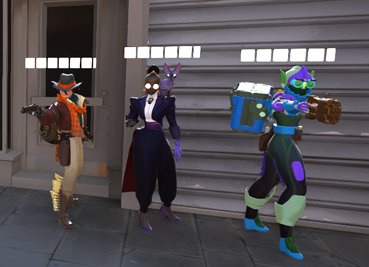 Другие общие изменения Добавлены похвалы. Вы можете похвалить игроков, с которыми вам понравилось играть во время матча или в таблице результатов после игры (там же, где находится кнопка жалобы). Количество похвал, полученных вами за каждого героя, будет отображаться в вашем профиле. Добавлен новый шейдер персонажа для улучшения видимости игрока во всех областях карты и экспериментов с более стилизованной визуализацией моделей персонажей.