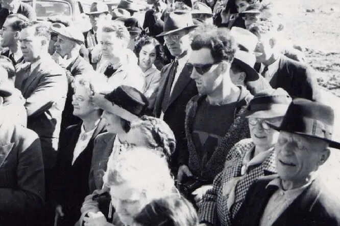 Многие годы по сети бродит казалось бы обычная фотография, сделанная в Канаде, в 1941 году. Но пользователи сети увидели на этом снимке то, что породило среди них множество самых разнообразных теорий и предположений. Действительно ли на этом снимке запечатлено нечто невероятное или все эти слухи ничем не обоснованы? Что же с этим снимком не так? На фотографии мы видим толпу людей одетых как раз по моде 40-х годов прошлого века. Но один человек, явно отличается от всех. Немного о том, что за событие запечатлено на снимке. В 1941 году в Саут-Форке (Канада) был построен новый мост и в этот солнечный день он был торжественно открыт. Среди присутствующих явно выделяется высокий мужчина с современной стрижкой, в темных очках с боковыми шторками, держащий в руках фотоаппарат и одетый уж очень по современному; в футболке с логотипом и в полурасстегнутом кардигане, несмотря на то, что почти все окружающие его мужчины одеты в костюмы. Впервые эта фотография была представлена современникам в 201