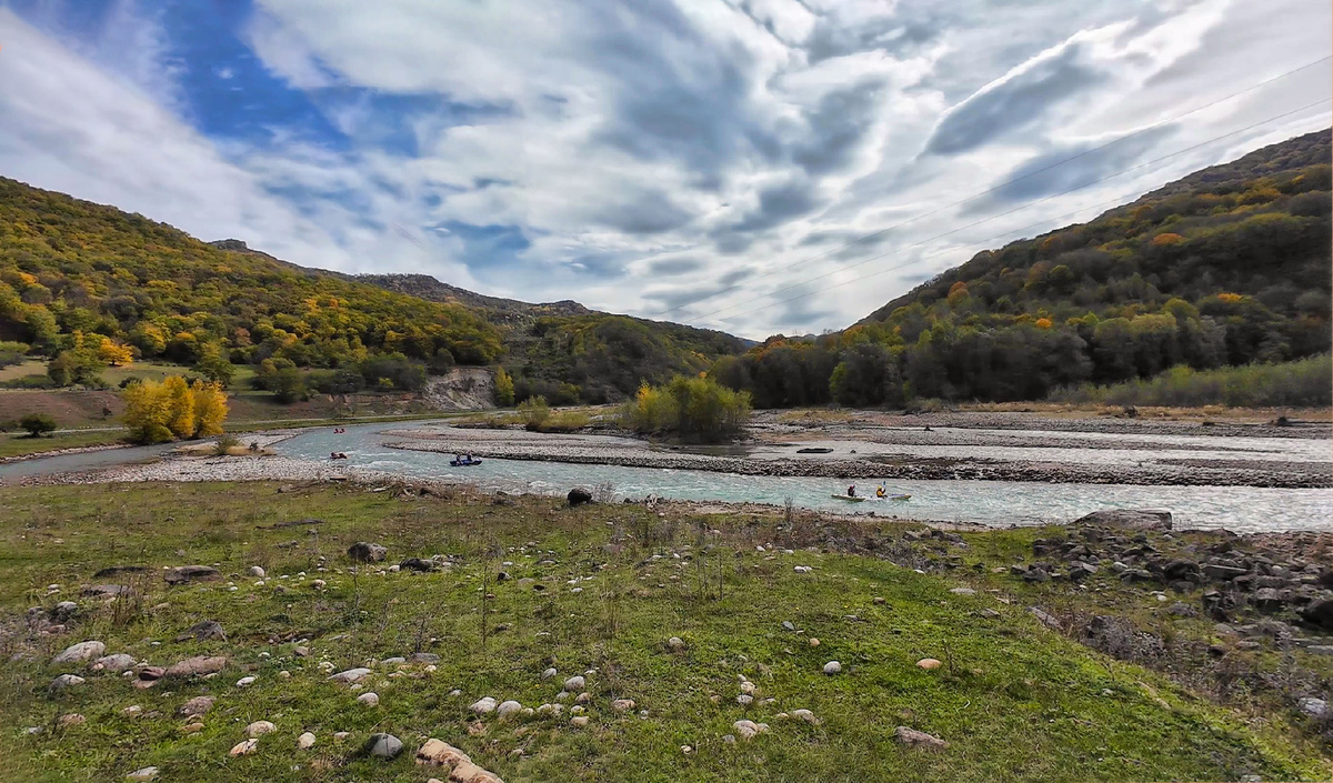 Наверное, если мне надо будет быстро и не задумываясь ответить, какое место в горах я люблю больше остальных, я первым делом назову Махар, а потом начну перечислять другие места))) И ведь уже сколько раз мы тут были, а посмотрели еще далеко не всё! Тут еще куча водопадов и озёр, которых мы либо не видели, либо видели издалека, но не подходили близко. Сегодня как раз покажу два таких водопада. Мало того, что мы из дома поздно выехали, так нам еще и грибы всю дорогу мешали)) Отвлекали своими нарядными шляпками))) Я если честно уже подумала, что мы вообще не доедем до долины, какой смысл приехать туда ночью?)) Всю дорогу мы останавливались, грибов море, надо собирать, вдруг последние? Посмотрели, как сплавляются по реке на рафтах, и как им не холодно? Эти реки то и летом ледяные, про октябрь вообще молчу… Въезжали в КЧР по солнышку, пока доехали до долины, тучки набежали – дождь что ли собирается? Вот же ж какая зараза эти грибы)) Потрясла я Женю по камням, сегодня мы поменялись ролями –