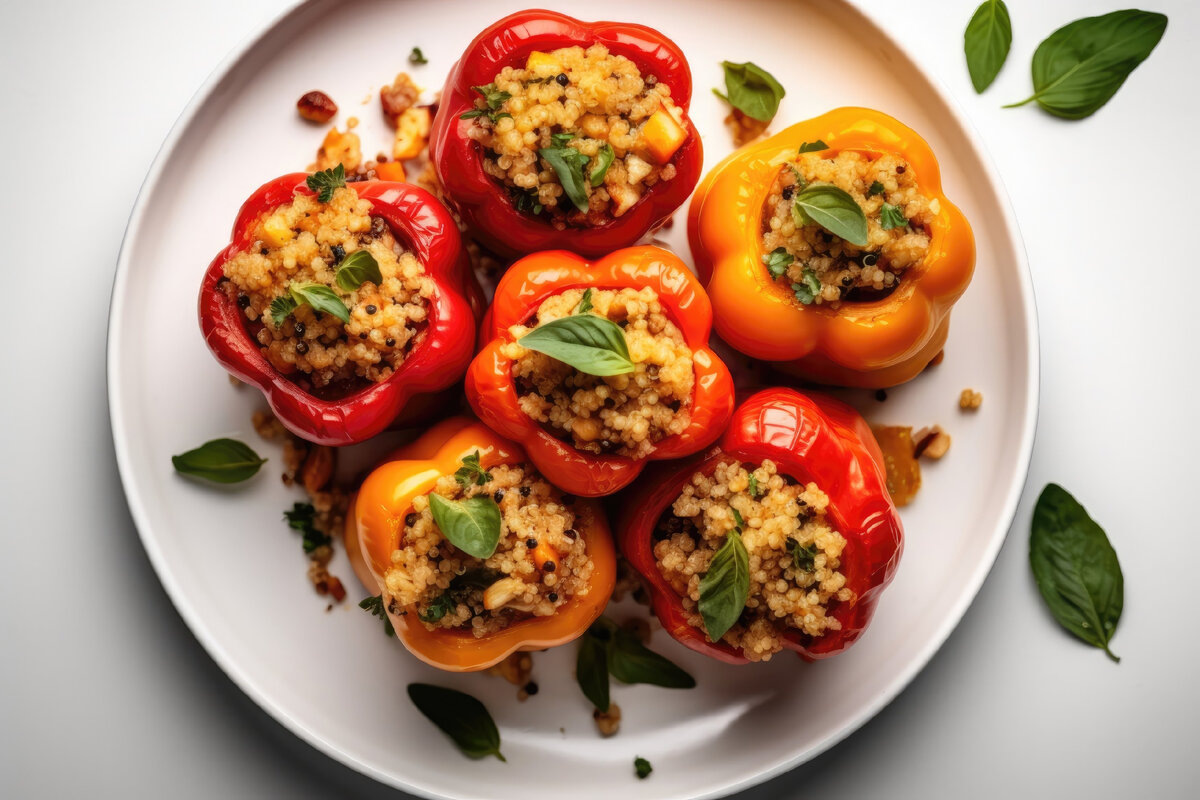 Вегетарианская кухня порой вызывает сомнения у любителей мяса. Однако существует множество изумительных вегетарианских блюд, которые способны покорить даже самых непоколебимых мясоедов. Они не только вкусны, но и питательны, а также привносят разнообразие в ваш рацион. Вот несколько рецептов, которые стоит попробовать. 1. Фаршированные перцы с киноа и овощами Ингредиенты: - 4 сладких перца - 1 стакан киноа - 1 помидор, нарезанный - 1 луковица, мелко нарезанная - 1 цукини, нарезанный - Соль, перец, оливковое масло, зелень по вкусу Приготовление: 1. Отварите киноа согласно инструкции. 2. На сковороде обжарьте лук, добавьте цукини и помидор, приправьте солью и перцем. 3. Смешайте киноа с обжаренными овощами. 4. Наполните перцы начинкой и запекайте в духовке при 180°C около 30 минут. 2. Бургер из черной фасоли Ингредиенты: - 1 банка черной фасоли - 1/2 стакана овсяных хлопьев - 1 луковица - 1 зубчик чеснока - Специи по вкусу (кмин, паприка) - Булочки для бургеров, листья салата, по