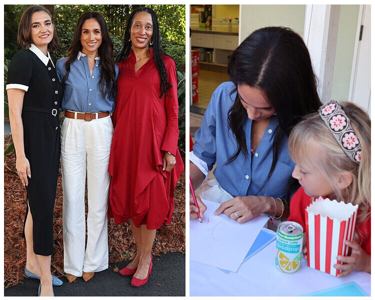 Меган Маркл, несмотря на отречение от королевской семьи, продолжает вести активную светскую жизнь в Соединенных Штанах. Герцогиня часто появляется на различных торжественных и благотворительных мероприятиях. На днях жена принца Гарри посетила встречу некоммерческой организации Girls Inc. of Greater Santa Barbara, которая специализируется на поддержке девочек в современном мире. Совместно с фондом Сассекских проект запускает новую программу «цифрового благополучия». Для мероприятия Меган выбрала белоснежные брюки клеш с акцентным коричневым ремнем, дополнила их свободной голубой рубашкой, у которой небрежно подвернула рукава, и остроносыми замшевыми лодочками. Образ получился в меру расслабленным, но в то же время деловым. Главный акцент — золотые часы Cartier Tank Française, принадлежавшие когда-то принцессе Диане. Их стоимость оценивается в 18 тысяч фунтов стерлингов (около 2 250 000 руб.). Посещение благотворительной встречи стало вторым мероприятием Меган, на которое она пришла без
