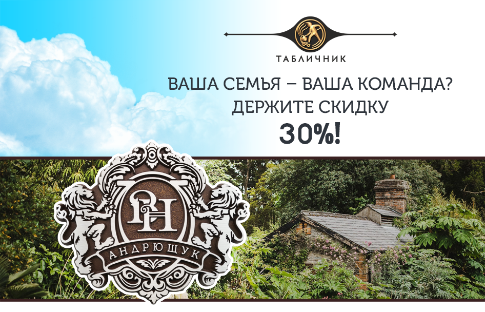 Источник фонового фото на баннере: unsplash.com Жизнь – не круиз, а рискованное путешествие по неизведанным водам. Но все радости и невзгоды мы делим со своей семьёй – лучшей командой на свете. «Табличник» считает, что у такой команды должно быть и знамя – семейный герб! В наше время это не показатель знатного происхождения, а символ общих ценностей, сплочённости и готовности стоять друг за друга. А семейный герб на свадьбу, годовщину или новоселье – это подарок, который ваши близкие запомнят на всю жизнь. Прямо сейчас этот потрясающий литой герб из алюминия можно заполучить со скидкой 30%! Дизайн в стиле барокко поражает пышностью и благолепием. Замысловатый фигурный щит поддерживают мускулистые львы – символ силы, храбрости и доблести. В центре будет монограмма из инициалов – современная альтернатива традиционной геральдике. Её мы разработаем персонально для вас. За счёт этого герб будет уникальным, несмотря на готовый дизайн. Под монограммой предусмотрено место для фамилии, семейног