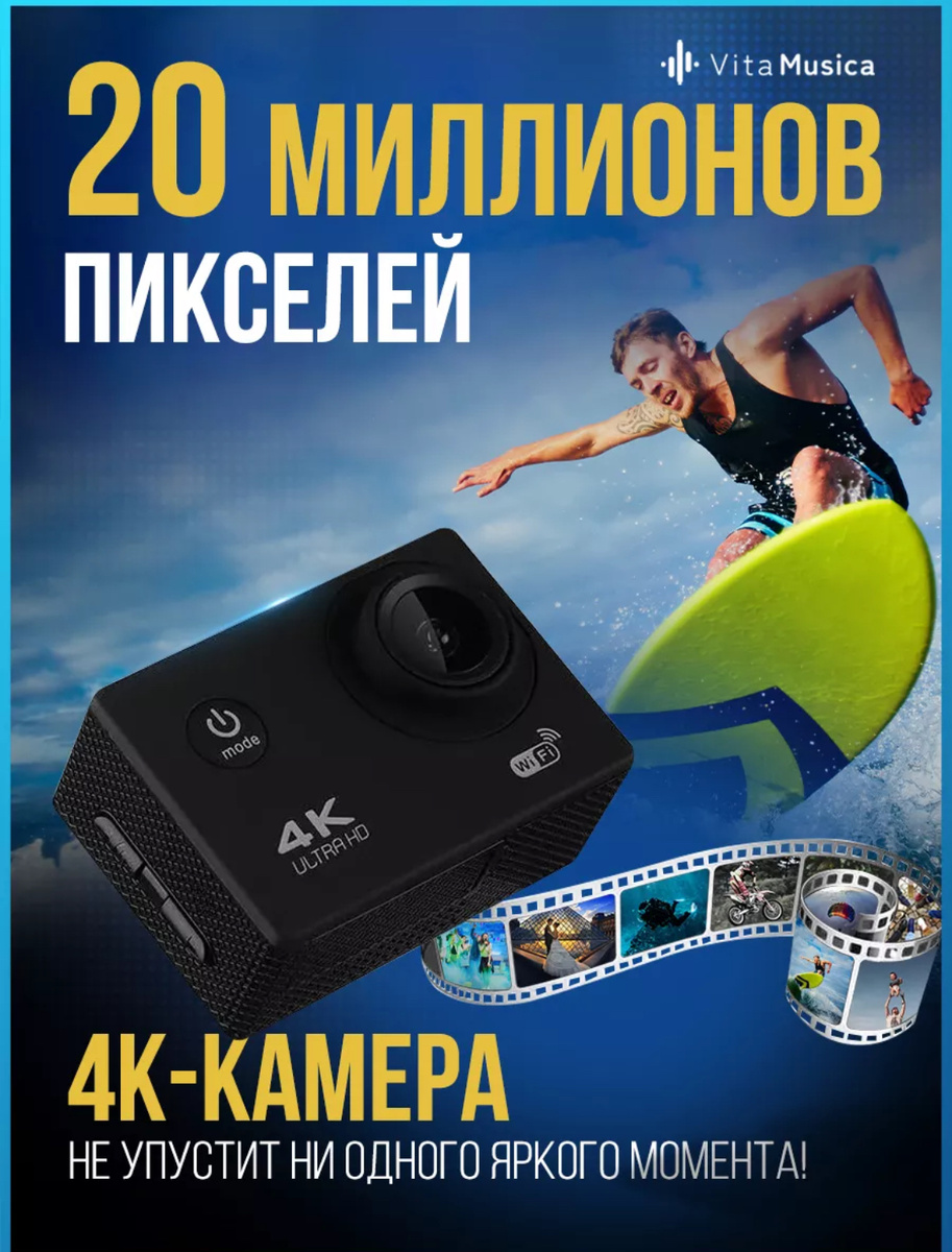 Водонепроницаемая экшен-камера 4K — это компактное устройство, которое позволяет запечатлеть яркие моменты вашей жизни в высоком качестве. Такие камеры становятся всё более популярными среди любителей активного отдыха, путешествий и экстремальных видов спорта. Но что именно делает их такими привлекательными? Что это? Водонепроницаемая экшен-камера 4K — это многофункциональное устройство, способное записывать видео с разрешением до 4K, что обеспечивает исключительное качество изображения. Они предназначены для использования в условиях повышенной активности и могут выдерживать попадание воды, что делает их идеальными для водных видов спорта, походов и путешествий. Преимущества 1. Wi-Fi синхронизация: Экшен-камера позволяет подключаться к вашему смартфону или планшету по Wi-Fi. Это упрощает процесс управления съемкой и позволяет мгновенно делиться видео и фото в социальных сетях. 2. Широкий угол обзора: Угол обзора в 140 градусов обеспечивает захват большей площади, позволяя вам запе