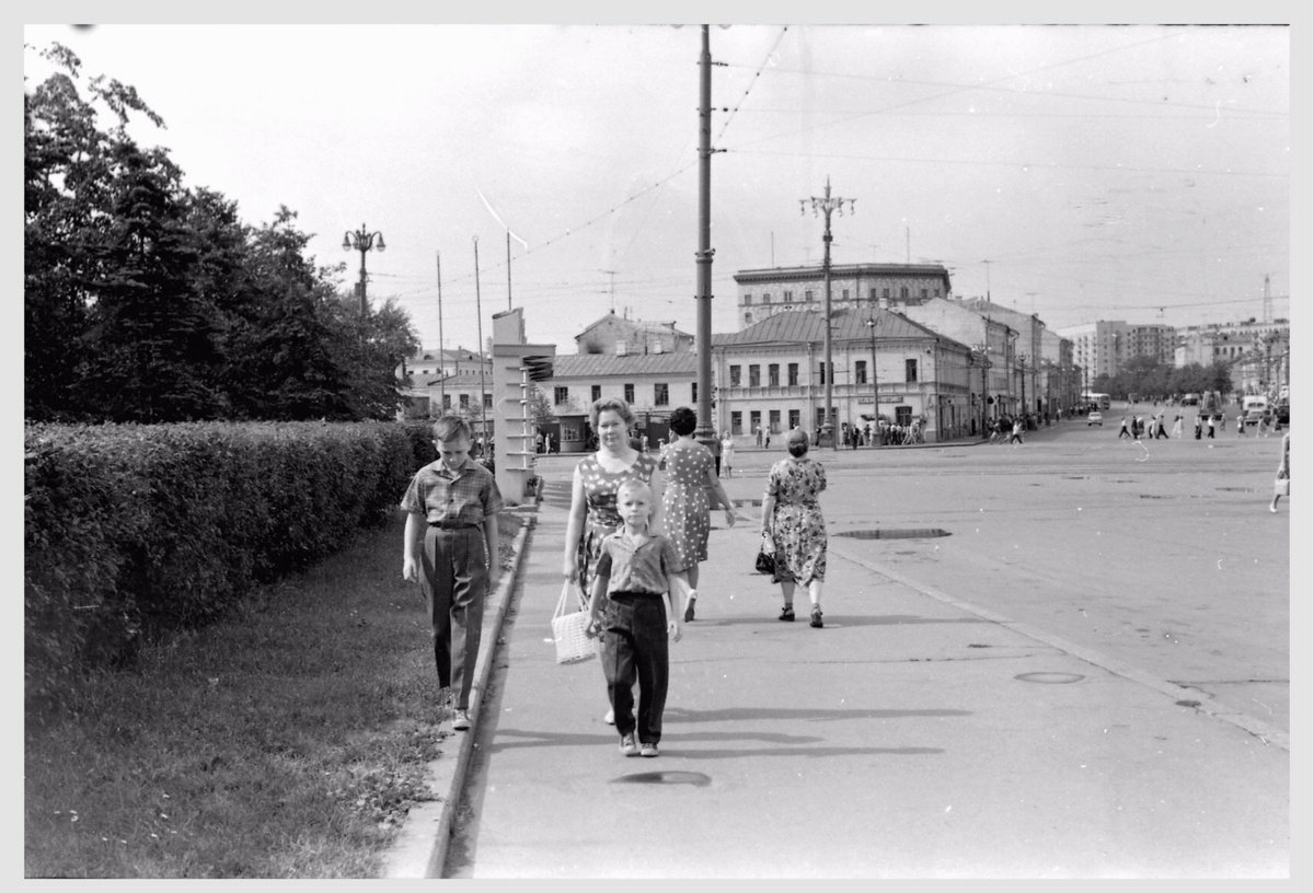 Давайте совершим очередное путешествие сквозь время по улицам родного города, посмотрим, что было тогда и как всё изменилось за прошедшие десятилетия. Поехали! ... В кадре Большая Дорогомиловская улица уходящая от Бородинского моста к Кутузовскому проспекту. Слева за сквером и кадром площадь у Киевского вокзала. Обратите внимание на квартал в центре кадра. Фото 1963 года, В.Абросимов Сейчас вид с этой точки изменился очень сильно. Вместо квартала в центре кадра теперь большой торговый центр, хотя построили его на месте сквера, который появился в конце семидесятых, после сноса исторической застройки. Ну а на горизонте неба теперь почти невидно, там возвышается частокол небоскрёбов Здесь запечатлен проезд кортежа с космонавтами Терешковой и Быковским по Большой Якиманке в сторону центра. Фото 1963 года По левой стороне Большой Якиманки в семидесятых-восьмидесятых годах снесли все старые здания, а саму улицу расширили раза в три. По правой стороне большая часть зданий сохранилась, но тоже