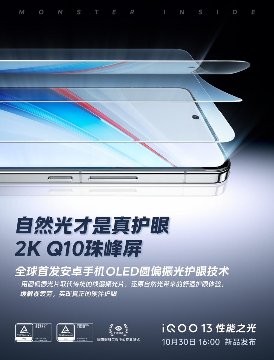 В преддверии запланированного на 30 октября выпуска смартфона iQOO 13, компания активно раскрывает некоторую интересную информацию, чтобы повысить интерес к этому новому устройству. Недавно, 25 октября, iQOO раскрыла детали конфигурации экрана своего нового флагманского телефона, который станет первым в мире Android-смартфоном, оснащённым технологией защиты глаз OLED с круговой поляризацией и новейшим светоизлучающим устройством BOE Q10.