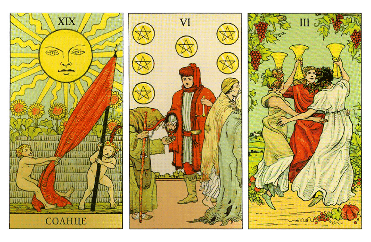 Меня зовут Дарья и я практикующий таролог и нумеролог, я делаю не просто расклады, а создаю мощный инструмент для индивидуального самопознания 🙏🙏🙏 Я разложу карты в интересующем вопросе и уверенна, что смогу вам помочь в вашей ситуации, ведь только мы сами вершим свою судьбу, и повлиять на ее направление гораздо проще, чем может показаться!☀️☀️☀️ Очень надеюсь, что каждый из вас, кто увидел этот расклад в данный период своей жизни использует из него самое необходимое на своём пути, либо сможет найти свой иной путь, который будет вести каждого вопрошающего туда, куда он сам желает! 🌙🌙🌙 Связь со мной для личного расклада, первый расклад бесплатно на бусти или авито С любовью и светом, Дарья!❤️ Весьма вероятно, что мужчина, о котором вы размышляете, имеет к вам очень положительные и тёплые чувства. Солнце указывает на его оптимистичное восприятие ваших отношений, Шестёрка Пентаклей говорит о желании взаимопомощи и заботы, а Тройка Кубков подразумевает радость и общительность. Эти ка