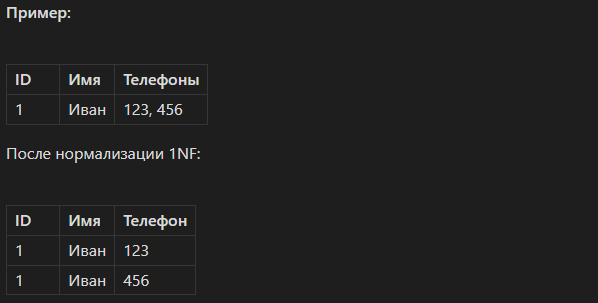 Нормализация выполняется через несколько нормальных форм. Каждая следующая нормальная форма исправляет проблемы предыдущей. Вот основные нормальные формы: