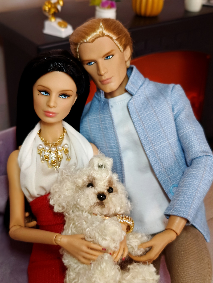 Всем привет! Название статьи — это не таинственный шифр, а первые буквы имен моих героев. Вчера я получила долгожданную посылочку с невероятно очаровательным питомцем, которого я назвала Луи. Его создателем является талантливая мастерица Ольга, автор канала LelikSun. Большое тебе спасибо за такое чудо! Луи признал своими хозяевами именно Ловетт и Ларсена. Пара в восторге от нового друга! Однако это не все новости. Ларсен сделал своей любимой кинодиве роскошный подарок — меховой кейп. Пожалуй, такой предмет одежды идеально подходит для красной дорожки. Думаю, Ловетт будет получать награды за выдающиеся заслуги в кинематографе именно в нем. Судя по всему, у моих персонажей все хорошо! Луи точно попал в заботливые руки и наверняка подружится с другими миниатюрными питомцами. А в вашей коллекции куклы любят домашних животных? Буду рада посмотреть на них в комментариях!
