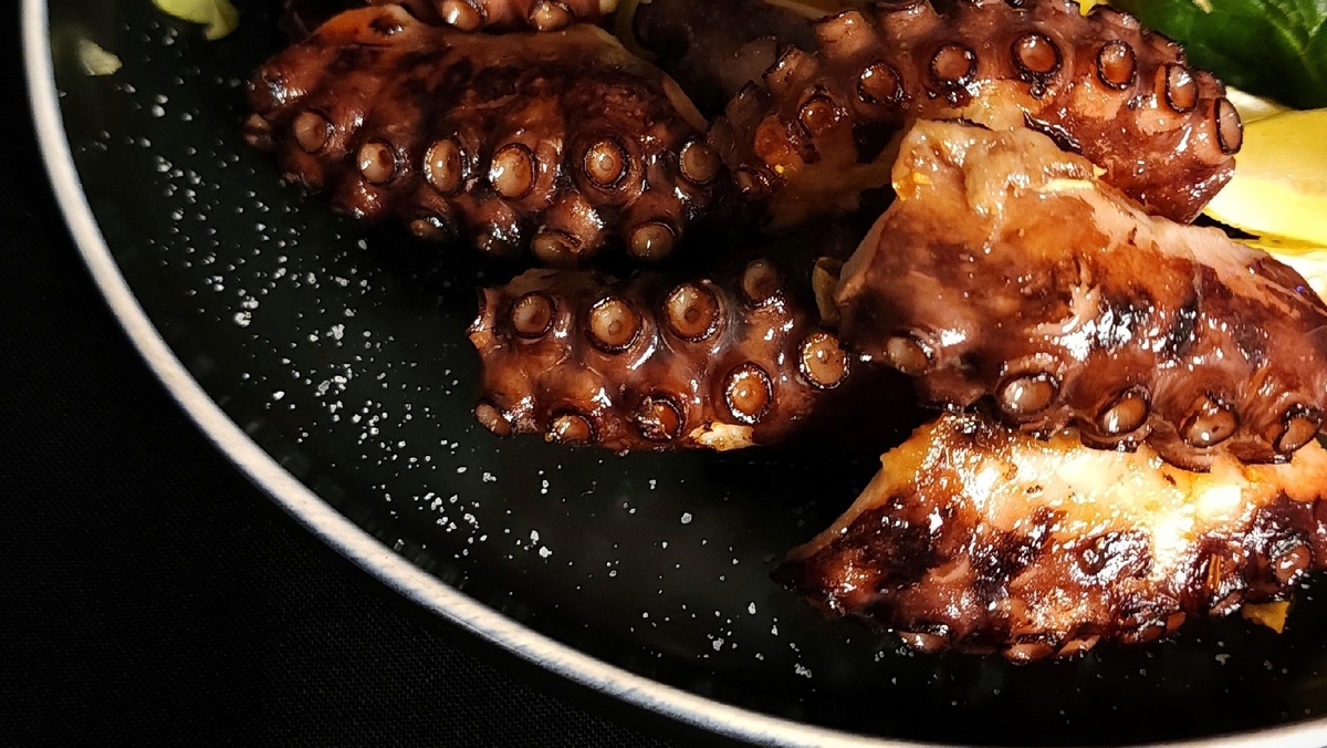 Моя история знакомства с осьминогом, начинается конечно же с одного ресторанчика в Сочи. Там я попробовала его впервые, и, не могу сказать, что он мне понравился. На вкус это было никак. Безвкусный кусок резины, политый сливочным соусом. Но я человек дотошный, и решила попробовать его ещё в нескольких местах и не прогадала. На самом деле мясо осьминога нежное, мягкое, с интересным сладковатым вкусом. А так же очень полезно для организма, богато белком и ценными микроэлементами. Главное, правильно его приготовить. Нельзя подвергать осьминога долгой термической обработке, именно поэтому он теряет свой вкус и становится резиновым. И я конечно же решила попробовать осьминога сама. Увидела в продаже случайно, в рыбном отделе одного из гипермаркетов. Сейчас опишу свой способ приготовления, сразу хочу обратить ваше внимание, мой осьминог весил 2 килограмма. Если ваш меньше, или больше, то времени соответственно понадобится меньше или больше на каждый этап🙌 Итак. Для начала нас ждёт долгий