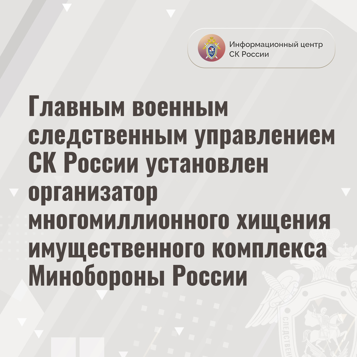 Главным военным следственным управлением СК России установлен организатор многомиллионного хищения имущественного комплекса Минобороны России