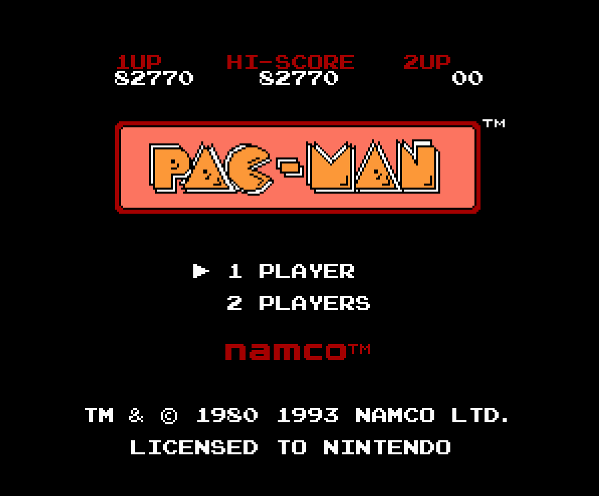 «Pac-Man» от издателя и разработчика «Namco». Решил проверить европейскую версию. Здесь незначительные изменения на титульном экране и в демонстрационном ролике – у персонажей теперь не только прозвища, но и имена. Звук игры немного замедлен. В остальном всё то же самое – постепенное нарастание скорости, увеличение сложности и бесконечность.