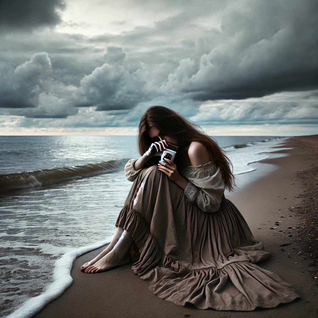 Небо было серым и низким, как будто вот-вот должно было разразиться дождем. На пустынном пляже сидела девушка Катя. Она сжимала в руках плитку горького шоколада и смотрела на волны, которые бились о мокрый песок, унося с собой ее мысли. Ветер терзал волосы, спутывая их, но ей было всё равно. Горький шоколад всегда был ее любимым. С детства она любила этот вкус, в котором сливались сладость и едва уловимая горечь, напоминающая ей о тех моментах, когда жизнь дарила радость и одновременно заставляла плакать. Вкус горького шоколада стал ее утешением, пожалуй, ее единственным другом в трудные минуты. Сегодня был один из тех дней, когда воспоминания накатывали, как холодные волны, и ей хотелось остаться наедине с этим чувством. Недавно ее сердце разбилось. В жизни Кати был человек, с которым она разделяла каждый день — Андрей. Он был ее первой любовью, той самой, которая казалась вечной. Они познакомились в университете, вместе гуляли по ночным улицам, обменивались мечтами и обещаниями. Он з