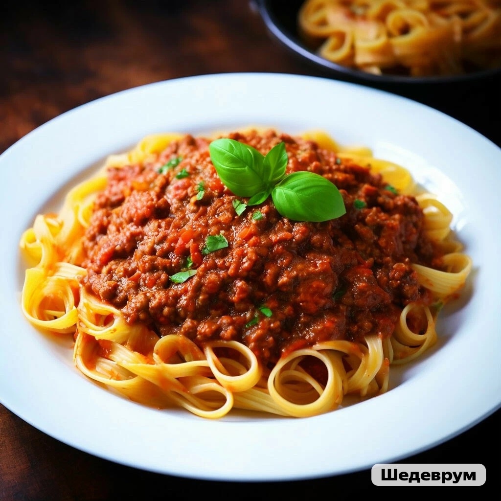 Ингредиенты: - 500 г спагетти - 400 г фарша (говядина, свинина) - 2 луковицы - 1 морковь - 3 зубчика чеснока - 2 ст.л. томатной пасты - 200 мл красного вина - 0,5 стакана воды - соль, перец, специи по вкусу - зелень петрушки и базилика - оливковое масло Приготовление: 1. Спагетти отварить в подсоленной воде до готовности. 2. В глубокой сковороде разогреть оливковое масло и обжарить мелко нарезанный лук и чеснок. 3. Добавить фарш и обжаривать до золотистого цвета. 4. Добавить морковь, нарезанную кубиками, томатную пасту и специи. 5. Влить вино и воду, перемешать и тушить на среднем огне 10-15 минут. 6. Добавить спагетти в сковороду к соусу, хорошо перемешать и готовить еще 5 минут. 7. Приправить по вкусу солью и перцем, посыпать рубленой зеленью и подавать горячим.