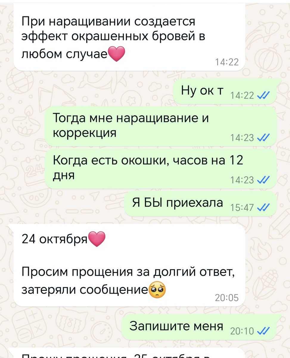 И если вы сейчас задумались, что я, возможно, перепутала брови и ресницы, то нет, я всё верно написала. Не так давно я узнала, что существует такая процедура, и решила записаться в салон красоты. Сначала мне отвечали 6 часов. К слову, такое отношение недопустимо в сфере обслуживания, и если бы они не были единственными, кто это делает, я бы, наверно, и не поехала туда, но они пока единственные. Ехать пришлось на край географии, потом искать место, ведь у салона нет ни одной вывески, обожаю. 😉 Салон красоты представляет из себя просто оборудованное помещение под салон с дверью без обозначений. Про пассивную агрессию салона рассказала в своём ТГ-канале (ссылка в шапке канала). В салоне стоит три кушетки, зона отдыха, ресепшен. Несмотря на то что я немного опоздала и меня уверяли, что у мастера плотная запись, когда я уходила, следующий клиент ещё не пришёл. Мне дали тапочки (не одноразовые), потому что нет бахил, и я пошла на кушетку. Вот моё "до". И если вы не понимаете, в чём пр