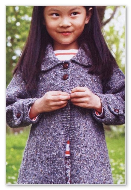 Вам потребуется: 350 (400, 450) г пряжи Debbie Bliss Donegal Luxury Tweed Aran (90% Wool/10% Angora, 50 г/88 м) № 42 серой-меланжевой; спицы № 4.5 мм (US 7) и 5 мм (US 8); 3 средние пуговицы, 2 маленькие пуговицы.