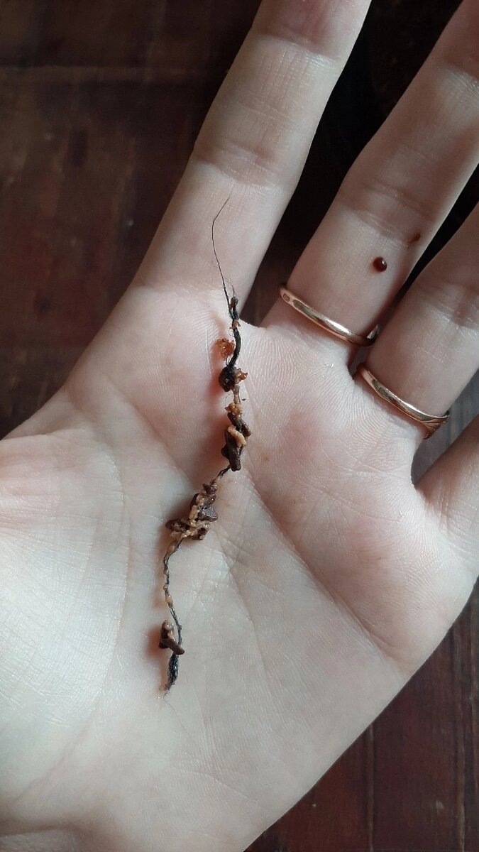 Конечно же он был очень возмущён. Выглядит нитка как чей-то хвостик.