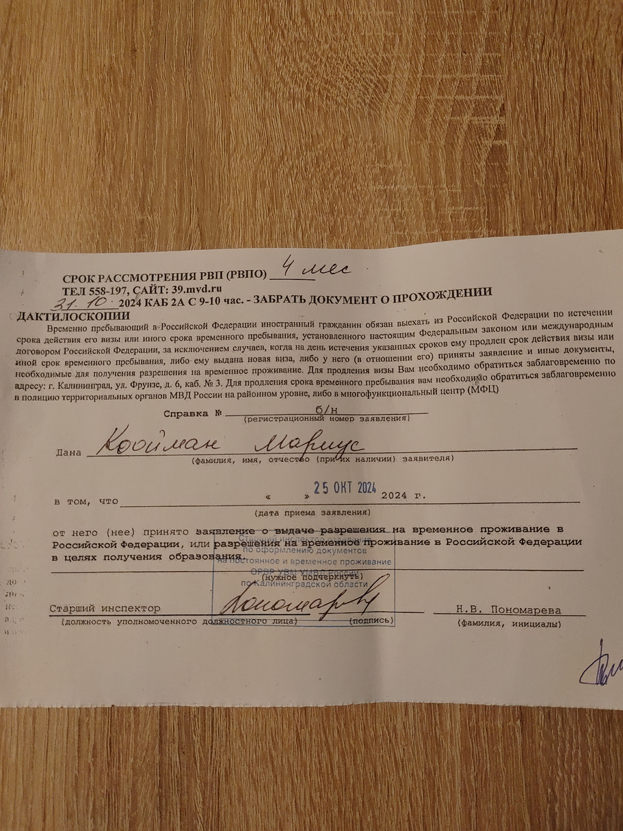 По времени это все заняло почти месяц. Могло быть еще быстрее, но как я уже писала раньше - в Калининграде требуют свидетельство о рождении, которого нет в списке документов для получения разрешения на временное проживание (РВП).