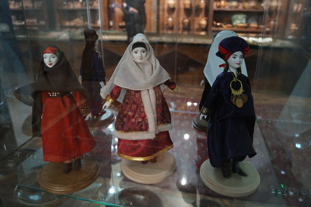 В Центр этнической культуры в Махачкале вход свободный. Я не очень люблю такие музеи, где просто разная утварь. Но здесь было занятно. Смотрительницы предлагали смело ступать на ковер, заметив, что я огибаю его. Но у меня нога не поднималась топтать такое великолепие. - Значит, вы понимаете в ручной работе, - с уважением ответила женщина. Один ковер стоит 40 тысяч рублей. Мастерица, работая весь день, соткет его за месяц. Не последние деньги для Дагестана, но и не самый легкий труд. Наиболее интересными оказались женские костюмы. Как вы, должно быть, знаете, нет национальности дагестанец. В республике уживаются много разных народов со своими языками и культурными особенностями. Вот костюм жительницы села Тинди. Шелковое платье называется горде, головной убор - чухтур. А девушка из села Ругуджа носила на голове маргъал из кораллов, серебра, жемчуга и монет. Мне больше всего понравился “гусарский” наряд жительницы Бабаюрта. Шелковое с золотым шитьем платье называется къабалай, есть еще н