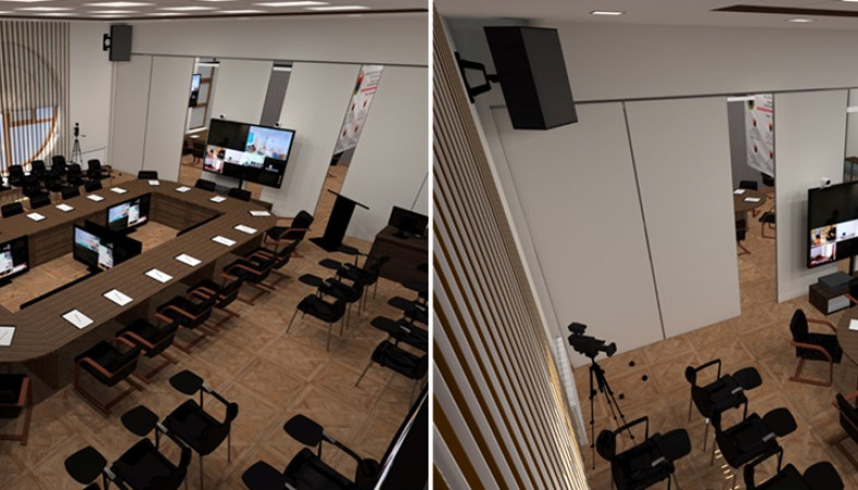 В комплекс мультимедиа входит проектор, экран с электроприводом, приемник, передатчик, разветвитель, LCD дисплей, 6 штук дублирующих телевизоров, настольный микрофонный массив (тоже 6 шт), двухполосная потолочная акустическая система, усилитель мощности, видеокамера, ноутбук, монитор, графический планшет и другие технические устройств и аксессуары.