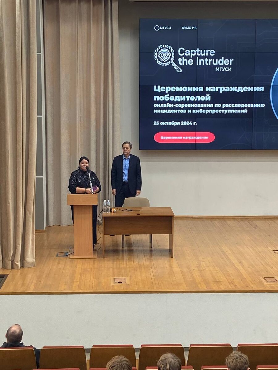 Сегодня в Конгресс-центре МТУСИ прошла торжественная церемония награждения победителей финального этапа онлайн-соревнования по расследованию инцидентов и киберпреступлений «Capture the Intruder» (CTI).