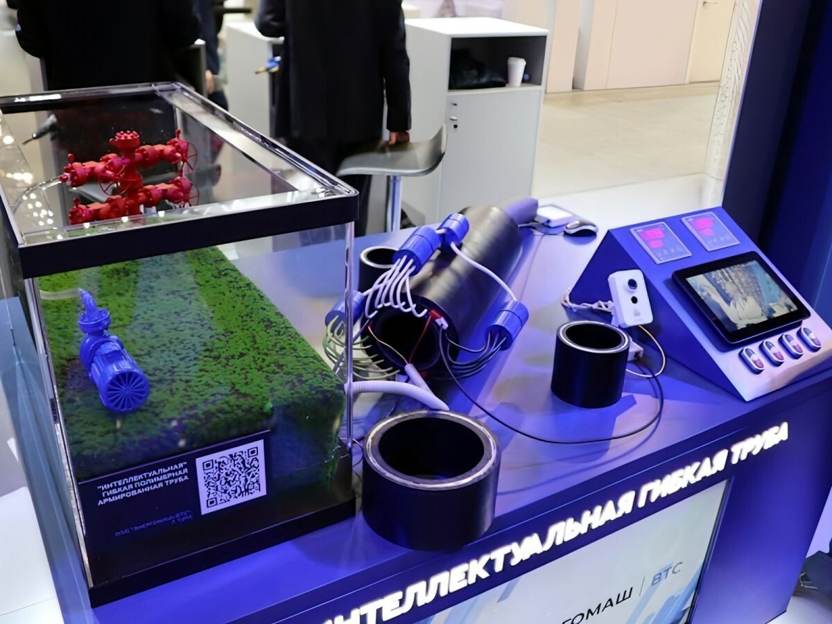 Так, специалисты предприятия с помощью ряда научно-исследовательских и опытно-конструкторских работ (НИОКР) создали «интеллектуальную» гибкую трубу, в которую интегрированы сегменты с проводниками, выполняющими различные функции. Наличие нагревательных элементов позволяет транспортировать среды с поддержанием температуры, что важно для добычи углеводородов в условиях Крайнего Севера. Через сигнальные и оптоволоконные проводники можно передавать данные от датчиков, а наличие силовых элементов позволяет питать электрооборудование. Изобретение презентовали гостям форума. Также стенд тульской компании посетил глава «Газпрома» Алексей Миллер. Он высоко оценил перспективы развития производства и использования разработки в нефтегазовом секторе. За высокий уровень представленной экспозиции ООО «Энергомаш-ВТС» было удостоено специального диплома организаторов выставки.