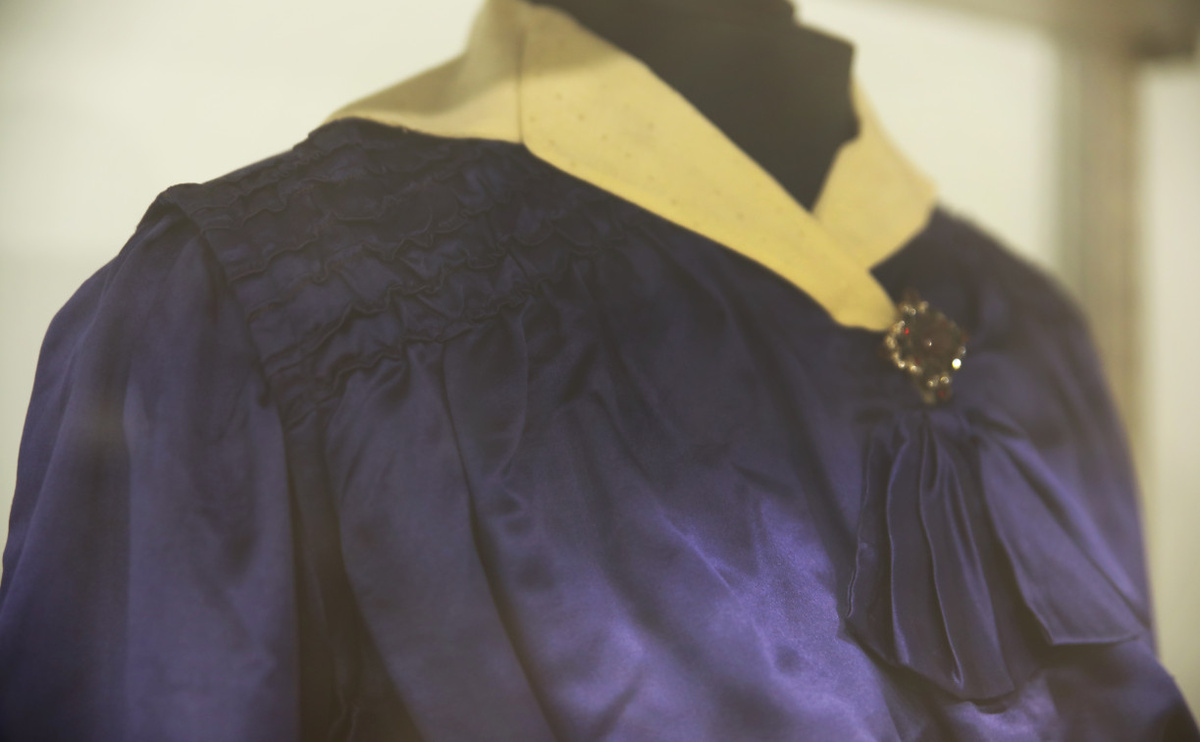 Выставка дает представление о многочисленных фактах, связанных с модой. Основным облачением горожанок во второй половине XIX века было длинное платье в пол. Дворянки имели множество нарядов, которые меняли на протяжении дня. Список одних только светских костюмов включал: прогулочное, выездное, бальное, визитное. Представлено повседневное городское платье из синего шёлка с белым воротником начала XX века.