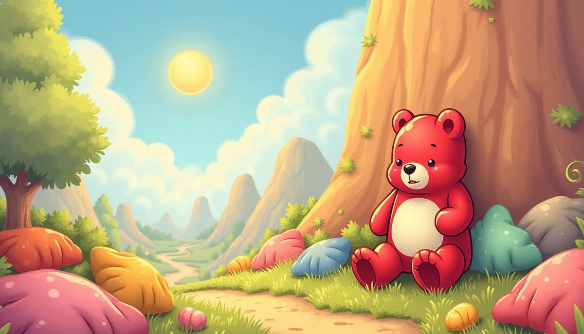 Жил-был мармеладный мишка. Однажды, маленький мальчик выронил его прямо на подушку, не заметил этого и уснул. Потом пришла мама мальчика и выключила в комнате свет. Мишке стало страшно. Он закрыл глаза и его тоже потянуло в сон. Проснулся он на пушистых пледовых полях. Вокруг были одеялковые горы, простыневые реки и наволочковые леса. Всё было так красиво и мягко, что мишке очень понравилось. Он полюбовался всем этим и решил пойти по дорожке. Он шёл, шёл и вдруг услышал странный звук. Он пошел в сторону звука и обнаружил маленькую подушечку, которая плакала. - Что случилось, маленькая подушечка? Почему ты плачешь? - спросил мишка. - Я потеряла свою любимую игрушку, плюшевого зайчика, - ответила подушечка. - Он был моим лучшим другом и без него я чувствую себя одиноко. Подушечка снова заплакала, но ещё сильнее. - Не плачь, я помогу тебе найти твоего зайчика, - сказал мишка. - Вместе мы обязательно справимся! Он взял подушечку за её тряпичную руку и они вместе начали поиски плюшевого