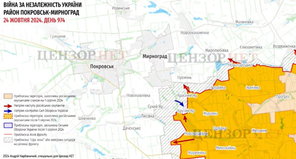 В боях за Красноармейск (Покровск) и Димитров (Мирноград) ВСУ уже ведут манёвренную оборону, поскольку нет линий укреплений, а в укрытиях, что «нарыли» местные власти, воевать нельзя. Об этом в своем видеоблоге заявил украинский военный пропагандист, главред антироссийского сайта «Цензор» Юрий Бутусов, передаёт корреспондент «ПолитНавигатора». «Обстановка в районе Мирнограда и Покровска, к сожалению, очень медленно, но ухудшается. Тяжёлые бои на въезде в Новогродовку, в районе Крутого Яра. Наши воины сдерживают российское наступление, к сожалению, в манёвренных боях, нет там никакой линии обороны, как всегда. Просто пустые посадки, где под огнём нужно зарываться, обычная ситуация на фронте.Болтовня властей, что там кто-то что-то строит, какие-то линии обороны – всё это враньё. Что-то роют, но поскольку роют неграмотно, большая часть этих сооружений просто не занимается войсками. Ну, и полная несогласованность действий [с военными] военно-гражданских администраций, которым дают деньги…В