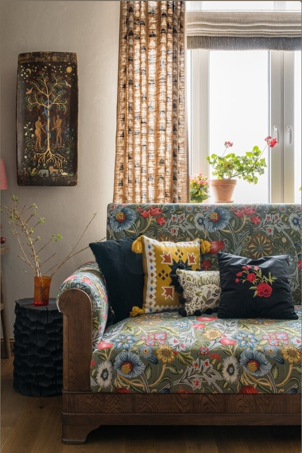 Сегодня мы вновь идем в гости к архитекторам Юлии Мусиной и Александру Сафарову. В прошлой статье я уже рассказывала об их колоритной даче. Теперь перед нами трехкомнатная квартира в Уфе — современная, но наполненная ностальгией, взрослыми решениями и смелыми дизайнерскими ходами. Пара приобрела это жилье больше десяти лет назад. Тогда интерьер был проще и моложе: только начиналась карьера, дети были маленькие, и вопросы быта решались иначе. Но со временем вкусы изменились, и понадобилось «взросление» пространства. С самого начала перепланировка захватила лишь часть квартиры — ту, где собирается вся семья. Перегородки снесли, пространство стало легче, кухня и гостиная теперь стали единым пространством. Постирочная появилась за счет уменьшения прихожей, а потолки в санузле и коридоре подняли, убрав подшивку. Здесь особое внимание уделили кухне: выполненная на заказ, она удивляет сочетанием строгой практичности и уникальных деталей. Места для хранения организованы в нижних выдвижных ящи