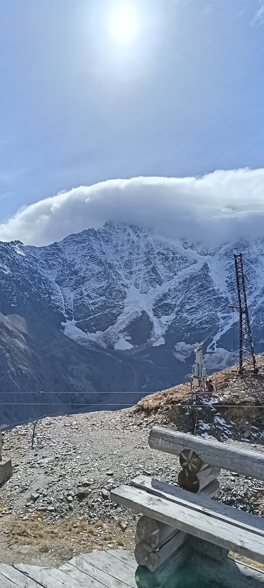 С некоторых пор у меня полностью удаленная работа, и ее существенный, пусть и очевидный, плюс, разумеется, в том, что можно работать и при этом находиться, где угодно. И вот занесло меня на Северный Кавказ. Горы, конечно же, были в программе. Но пока не про Эльбрус (о нем в следующих постах). Сразу покорять его нельзя. Может стать худо. Пока про гору поменьше — Чегет. Там я в полной мере оценила капризы погоды. Она меняется буквально каждую секунду. Пока стояла в очереди на подъемник, сияло солнце и небо было ярко-голубым. Спустя три минуты сгустились тучи и припустил дождь. Да, такой, основательный. Тут же рядом замельтешили торговцы. Предлагали дождевики и походные сидушки. Причем за копейки и настойчиво. Я опрометчиво отказалась, о чем потом не раз пожалела. Канатная дорога на Чегете — достопримечательность. Она 1963 года рождения, первая в Советском Союзе. И, конечно, вся ржавая и открытая. Сиденья, словно детские качели: деревянная скамейка и сверху перекладины. Сел, накинул их