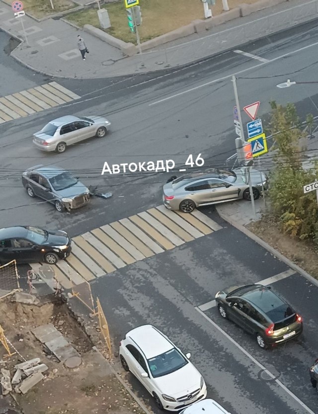 По предварительным данным очевидцев, которые выложили фото с места в паблике «Автокадр_46», на пересечении улиц Радищева и Марата столкнулись автомобили.