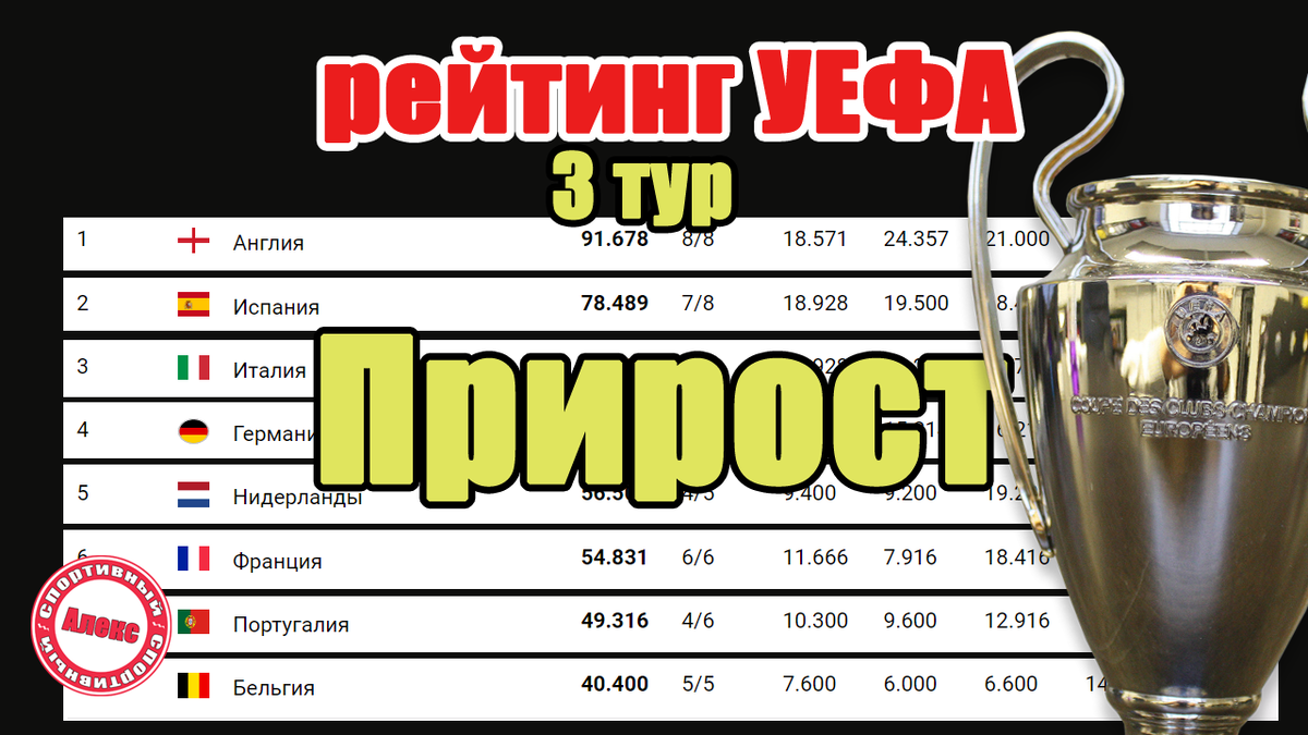 Обновился рейтинг УЕФА. Это значит, что мы на «спортивном» посмотрим прирост каждой страны. Так сказать, перемелем косточки всем, кто участвует в еврокубках. Призываю подпишитесь на наш канал в Дзене, Рубуте, телеграмме и в ВК. Этим вы очень поможете. Пиши комменты, стараюсь читать все. Услышимся на «спортивном».