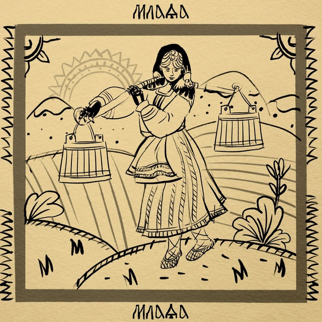 Главный образ в нашей песне «Млада» – это девушка с коромыслом. А вы знали, что вёдра на нём – это символ баланса? На Руси ношение воды считалось женским делом, потому что с помощью коромысла они тренировались и физически, и морально. Так сказать, овладевали искусством баланса. Например, если оба ведра полные, то и несутся они легко. А если только одно, то и путь тяжёлый путь, и вода прольётся. Так и в жизни: если есть баланс в отношениях мужа и жены, то и в семье всё ладится!
