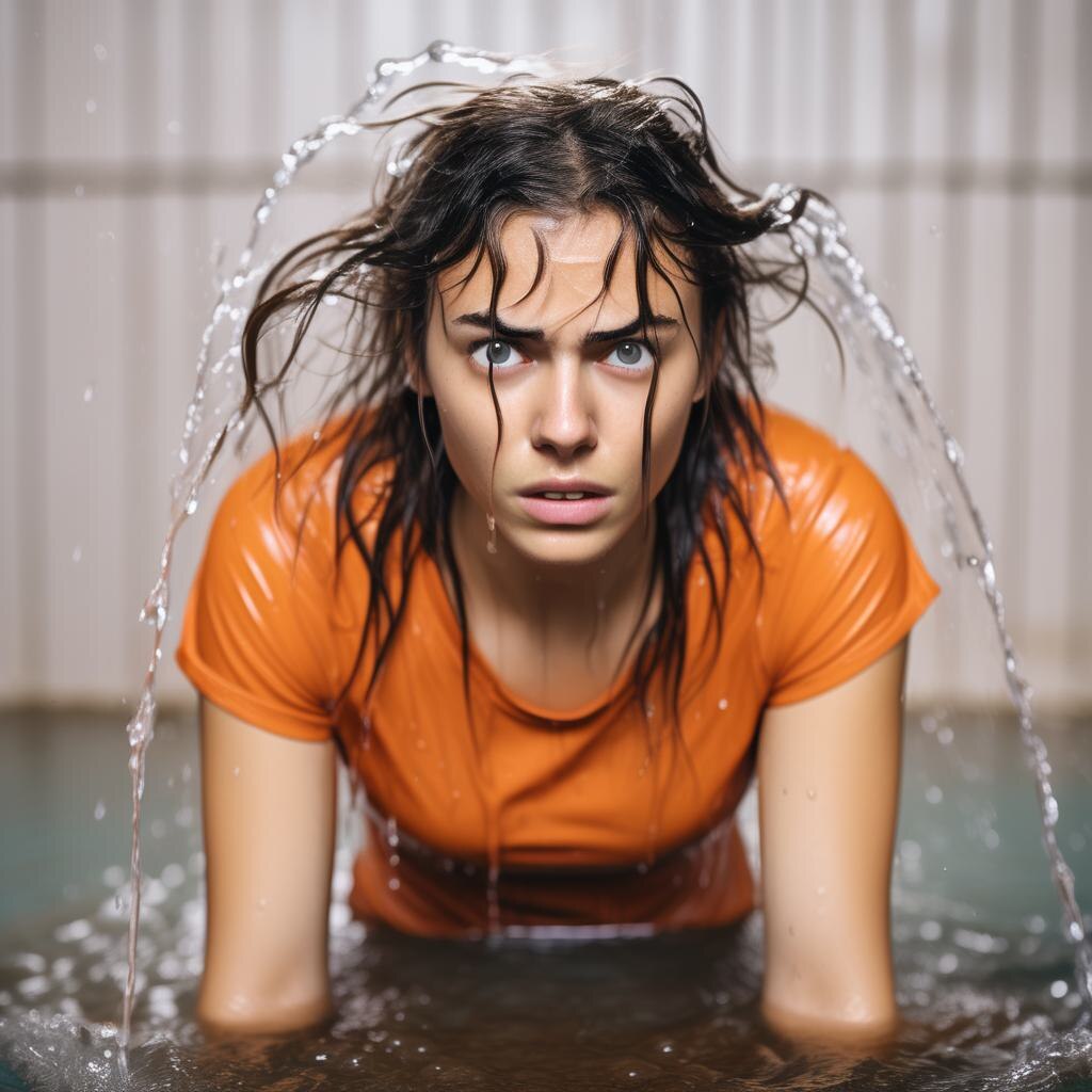 В лицо Анфисы, которая спокойно спускалась с четвёртого этажа в красном облегающем платье, вдруг резко «прилетело» литра полтора прозрачной жидкости. Удар пришёлся прямо в лицо. В голове тут же всплыл кадр из вчерашнего детектива с пострадавшей девушкой-моделью, которую изуродовала завистливая соперница. Леденящий холод мгновенно разлился внутри Анфисы: там (в детективе) всё кончилось плохо, вот и здесь, по-видимому, та же история.