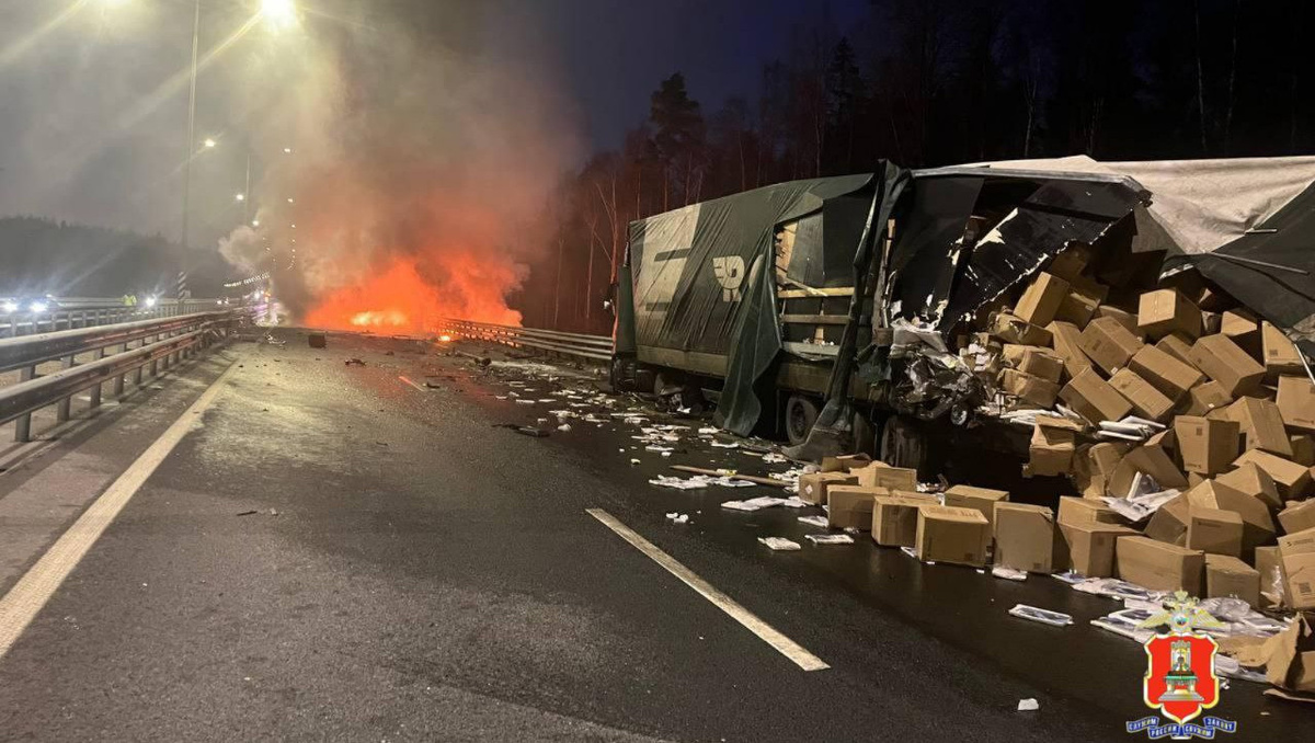 Появились подробности аварии и видео с места столкновения грузовиков на М-11