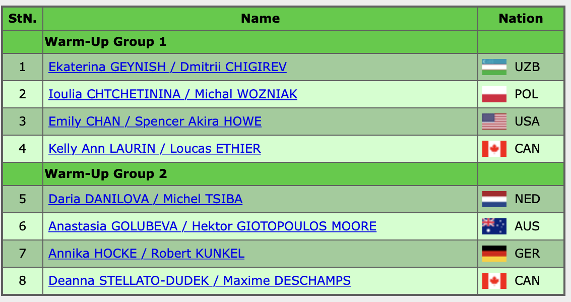 Итак, второй этап открывают спортивные пары. Первый лично для меня в парах был интереснее, но это моя любимая дисциплина, так что пропустить не могла. К тому же здесь дебютировала российская пара, недавно сменившая гражданство: Екатерина Гейниш и Дмитрий Чигирёв, которые теперь выступают за Узбекистан. Я плохо их помнила, но это всё ещё российская тренерская школа, так что я ждала высокий уровень от ребят. Кроме того, здесь была заявлена пара победителей прошлого Чемпионата мира: Стеллато-Дудек и Дешамп.