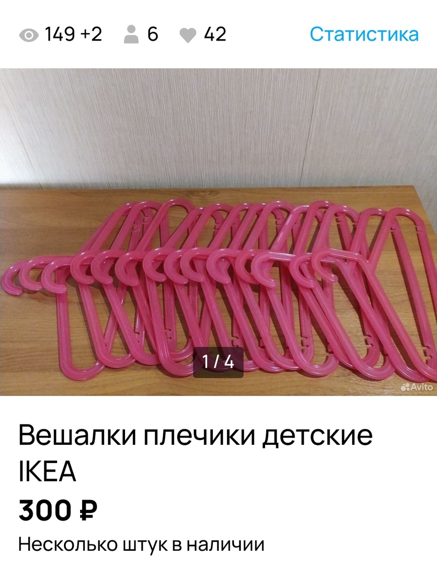 Продались детские вешалки Икея Их 14 штук, выбрала для продажи специально все розовые. Удачный опыт продажи синих вешалок уже был. Теперь откликнулась мама девочки. Продажа самовывозом, а точнее, мноюзаносом, (я после работы, по пути домой, занесла их ей на работу, она администратор в медицинском центре, работает допоздна). Отличная продажа. P.S. Как интересно устроено Авито. Только заинтересовалась вешалками моя покупательница, как тут же они понадобились ещё одной. Переписка очевидно оживляет лоты.