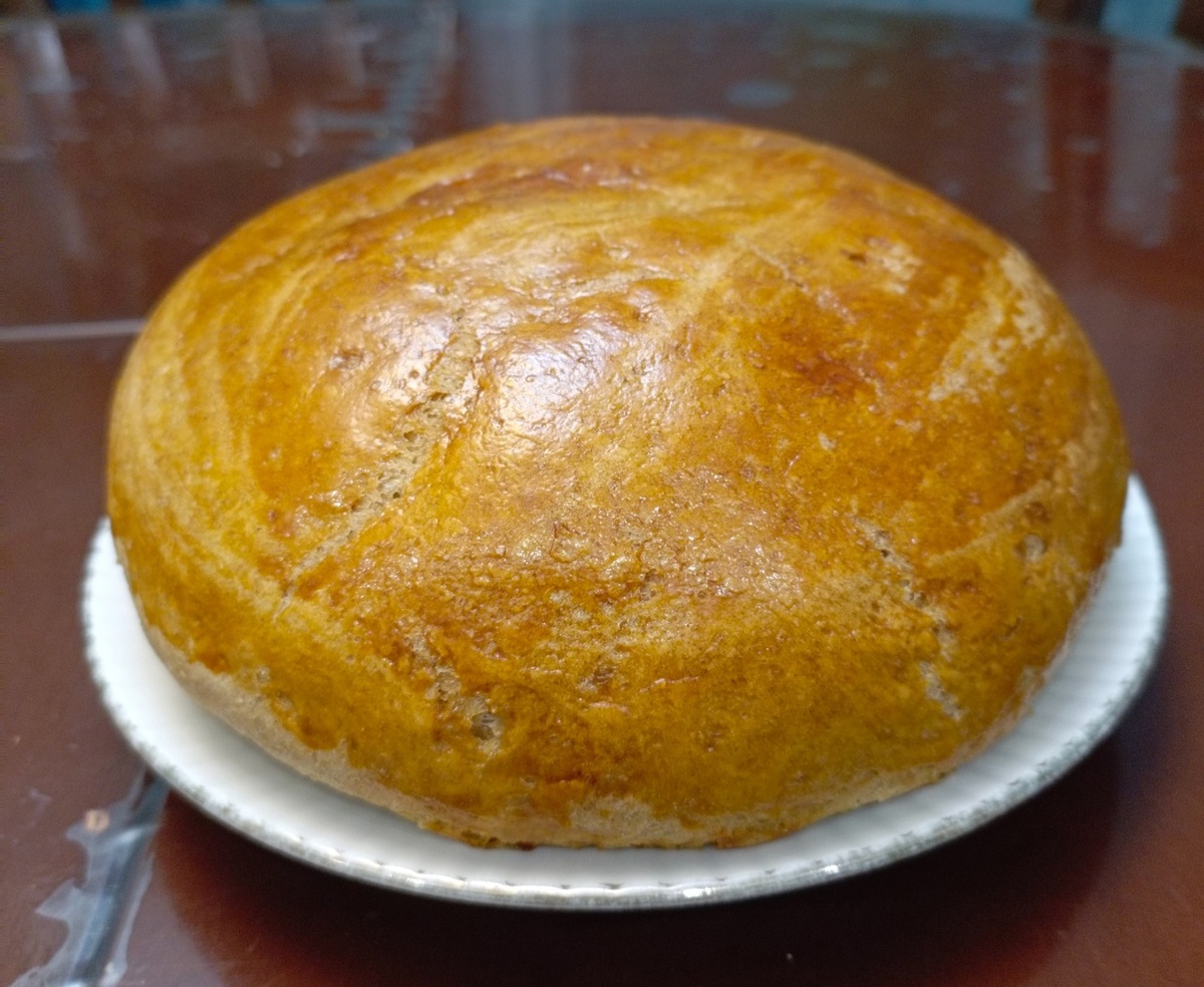 К праздничному хлебу относили и каравай. В толковом словаре Даля есть определение: "Каравай - непочатый цельный хлеб либо колоб. Каравай (тамбовск) - девичник; пресный хлеб ( рязанск.) - лепешка ; круглый пирог с курицей - ( новгородск., симб. ). Колоб - небольшой круглый хлебец..."