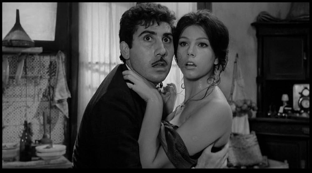 Фильм Пьетро Джерми. Соблазненная и покинутая (1964) Через три года после «Развода по-итальянски», на экраны вышел новый фильм Пьетро Джерми – «Соблазнённая и покинутая». Это тоже «комедия по-итальянски» и опять на экране сицилийские нравы. С чем можно сравнить «Соблазнённую и покинутую» в советском кино? «Кавказская пленница». Дело не в сюжете, не в игре актёров, не в натуре (где Италия, а где СССР!), а в особом, традиционном, восточном «колорите». Замечательный, смешной и серьёзный одновременно (как и любая «комедия по-итальянски) фильм с прекрасными актёрскими работами. Альдо Пульизи (Пеппино) и Стефания Сандрелли (Аньезе) в фильме Пьетро Джерми «Соблазнённая и покинутая» (1964). Застывшая экспрессия. Отметим, что Альдо Пульизи – сицилиец (родился в Катании). Нравы острова ему, должно быть, хорошо знакомы. Театральный актёр с большой карьерой, Пульизи сыграл две роли с «сицилийским колоритом». У Пьетро Джерми в «Соблазнённой и покинутой» и у Марио Моничелли в фильме «Не промахнись,