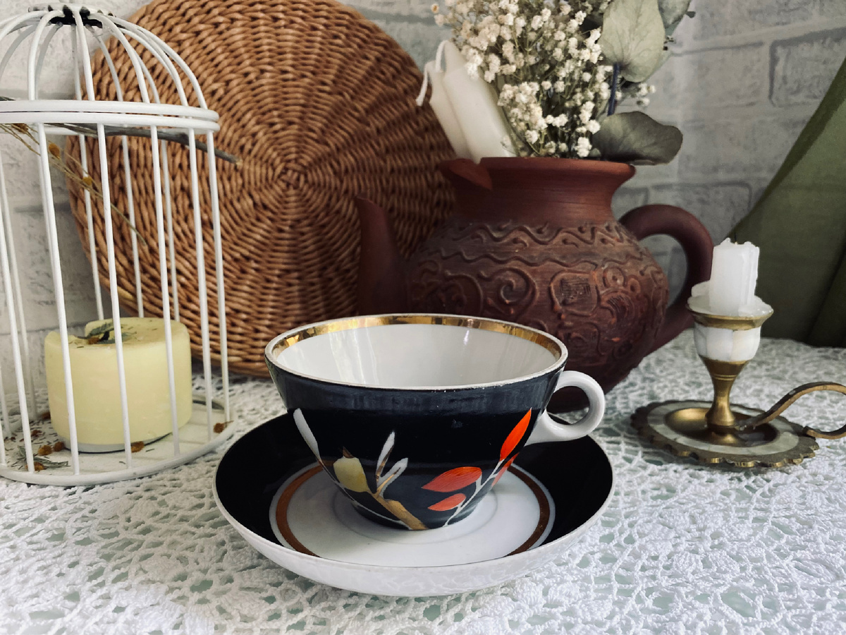 Постоянные читатели знают, что у меня есть коллекция винтажного фарфора. Сегодня я объединила в один обзор все свои чайные пары. Отчасти, и для собственного удобства. Хочу оговориться, что не все пары - одиночки. Некоторые являются полноценными участниками сервизов, но при возможности могут и сольно выступить. Веточки-листочки, Дулево Чашки с черным крытьем на форме колечко подарила моя прабабушка каждому из своих детей, в числе коих была и моя бабушка. Сколько я ее помню, она была без блюдца. А потом как-то спонтанно нашлось и блюдце на авито Пион, Дулево Этот тонкостенный невесомый фарфор фасона Тюльпан я забрала из деревенского дома, который сестра с мужем решили продать. Блюдце также добором искала и нашла Тигровая лилия, Дулево И эту красавицу на форме Киевская я из того же дома с собой прихватила. Благо, пара была комплектна Сказочная птица, ЛФЗ Официального названия этого декора я не знаю, и, скорее всего, оно отличается от того, что я придумала. В отличие от большинства моих п