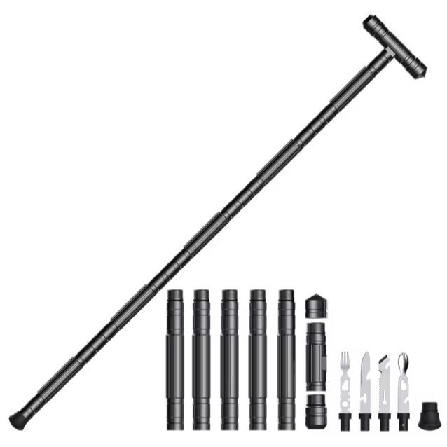 Походная металлическая палка для самообороны на открытом воздухе. А также, аварийный многосекционный Т-образный инструмент, состоящий из нескольких сборных элементов. И одновременно, сам целый комплект инструментов. В полых трубках-секциях находятся ещë четыре самодостаточных предмета: вилка, ложка, комбинированный нож-пила и просто нож. В качестве рукояток для этих инструментов используются те же полые трубки. Вся сборка, осуществляется при помощи резьбовых соединений. Дополнительно на этих инструментах также находятся накидные ключи, открывалки и даже гвоздодёр. Самый главный инструмент среди всего этого многообразия, это конечно молот-стеклобой, которым можно разбивать любые посильные твëрдые предметы. А Т-образное навершие можно использовать в качестве импровизированного стула, на который можно опереться и немного отдохнуть в пути. Вроде мелочь, но приятно. Подробнее об этом средстве смотрите ЗДЕСЬ Подписывайтесь на наш канал в Telegram, чтобы получать больше материалов о необычном