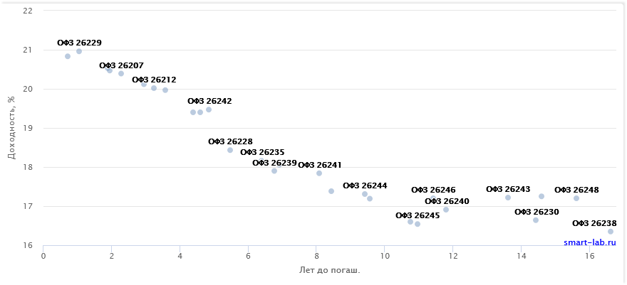 Купонная доходность длинных ОФЗ превысила 16%, доходность к погашению - выше 17%