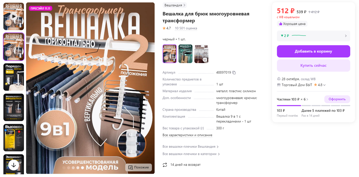 Всем привет, сделала для вас подборку для дома, которая поможет в организации рабочего пространства. Оставайтесь до конца, ведь обязательно найдёте что-то нужное! Вешалка будет отличным помощником для экономии места в шкафу. Брюки не будут мяться и при этом их всегда будет удобно достать. https://www.wildberries.ru/catalog/48897019/detail.aspx?targetUrl=GP&size=93891041 Вторая вешалка в моей подборке, которая экономит место в шкафу или гардеробной. На неё можно повесить сразу много вешалок или, например, галстуки или ремни. https://www.wildberries.ru/catalog/177176084/detail.aspx?targetUrl=GP&size=293420309 Органайзеры очень помогают в сохранении вещей и экономии времени. В них хранят нижнее бельё, носки, футболки, галстуки и утром. Собираясь утром на работу, вам будет удобно всё доставать. https://www.wildberries.ru/catalog/81796140/detail.aspx?targetUrl=GP&size=135035538 Напольные вешалки хорошо подойдут для гардеробной или для прихожей. В них удобно хранить вещи, которые быстро