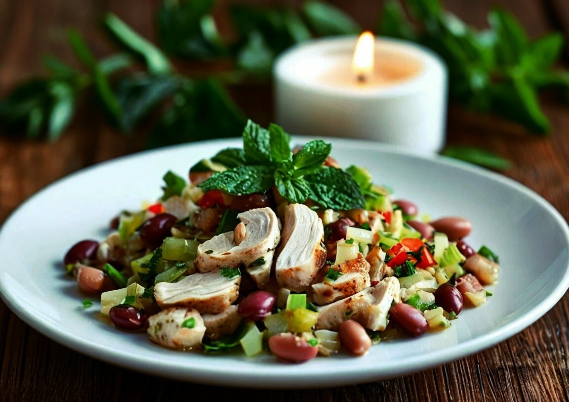 Сытный, вкусный салат на каждый день для всей семьи. Может выступать как самостоятельное блюдо. 1. Лук режем полукольцами. 2. Сахар смешиваем с уксусом и добавляем полученную смесь к луку. 3. Оставляем лук на пару часов – мариноваться. 4. Фасоль откидываем на дуршлаг, чтобы вся жидкость вышла. 5. Перец режем соломкой. 6. Орехи измельчаем, предварительно обжарив на сухой сковороде. 7. Мясо режем кубиками, или как вам удобно. 8. В миске соединяем все ингредиенты, солим, перчим и заправляем майонезом. Ещё больше рецептов по данной теме можно найти здесь. Понравился рецепт салата? Пишите в комментариях.